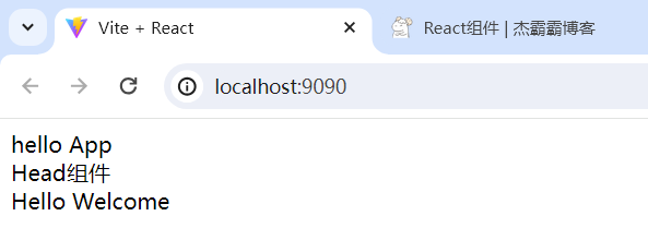 )查看浏览器发现MyComponent组件已经生效,函数名就是组件名: